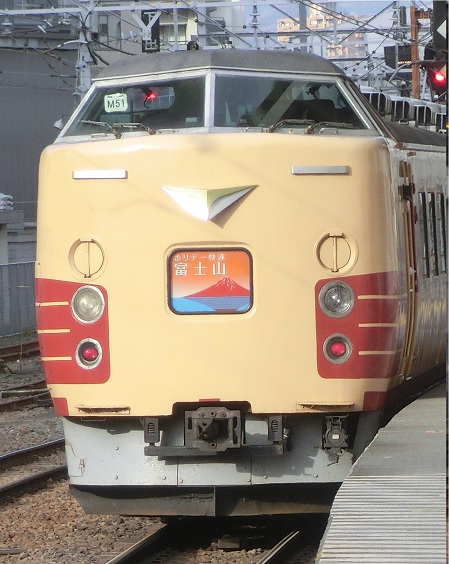 189系の車両。1975年に登場し、当初はあさま号として上野から長野方面を結ぶ特急として活躍した。特に横川〜軽井沢は最大勾配66‰を進むため、EF63との協調運転や寒さ対策などが施工されたのが183系との大きな違いである。2018年3月までホリデー快速富士山などの運用に使用されていた。なお、この車両、最後まで本線上に残った国鉄特急色の電車である。
