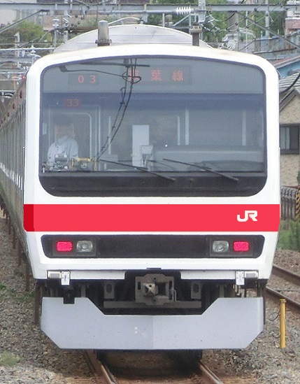 上に載っているウラ81編成が京葉線に転属した後の姿。帯が赤色に張り替えられている。当時は、E233系5000番台の置き換えにより、この編成も武蔵野線へ行く予定だったが、E331系が故障頻発により廃車になり、予備車が1本不足することにより、今も機器更新を受けながらも、京葉線に残っている。