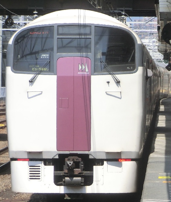 189系の車両。上記のM51編成と同じ豊田車両センターに所属していたが、こちらはグレードアップあずさ色を纏っている。グレードアップあずさ色を纏うようになったのは2015年頃で、それまでは上記のM51編成と同じ国鉄特急色を纏っていた。臨時あずさや金曜日運転の快速『富士山』に使用されていた。