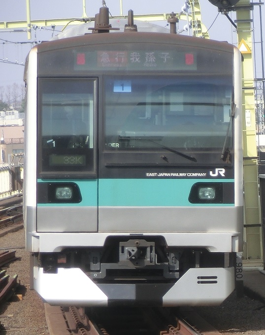 武蔵野線の車両。元は山手線で走っていたが、E231系500番台の導入に伴って、各線へ転属していった。その中でも、この編成は武蔵野線に転属した。当時、モハが不足していたため、京葉線東京駅周辺の急勾配に対応するため、VVVFインバータ制御に改造された。上記のE231系が武蔵野線に導入されているため、近々の引退が予定されている。
