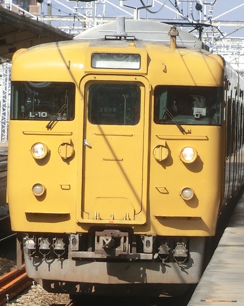 115系は、約20年に渡り製造され、合計で1921両もの車両が製造された。この編成は岡山地区に所属。元々は117系の中間車を組み込んだ4両だったが、2015年に下関から転入した115系の中間車に変わり編成名がK-02からA-14になった。