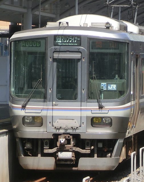 快速マリンライナー用の213系を置き換えるために導入された車両。四国の5000系と併結するため、従来の223系より若干顔つきが異なっている。5000番台に区分され、マリンライナー専業で活躍。