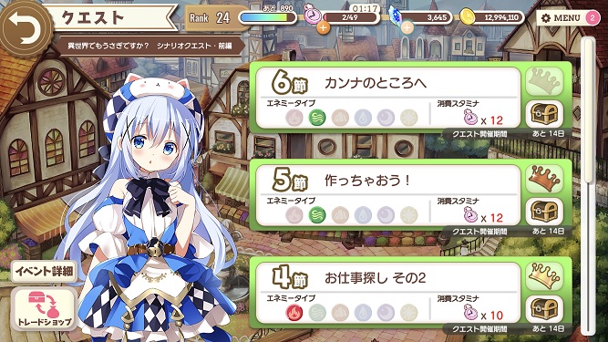 本日、ごちうさの限定クエスト始まりました。